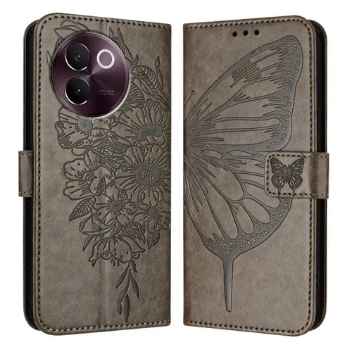 Para Vivo V30E 5G Funda de Cuero para Teléfono con Mariposa En Relieve Global (Gris)