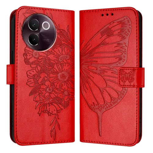 Para Vivo V30E 5G Funda para Teléfono de Cuero con Mariposa En Relieve Global (Rojo)