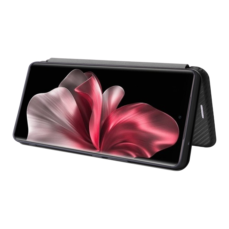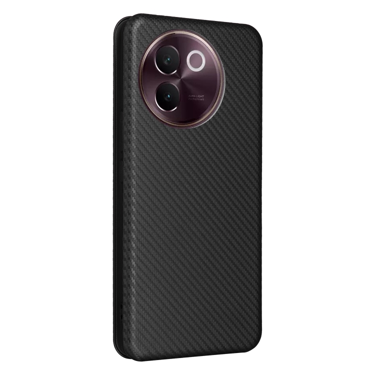 Para Vivo V30E Funda de Cuero con Tapa con Textura de Fibra de Carbono (Negro)