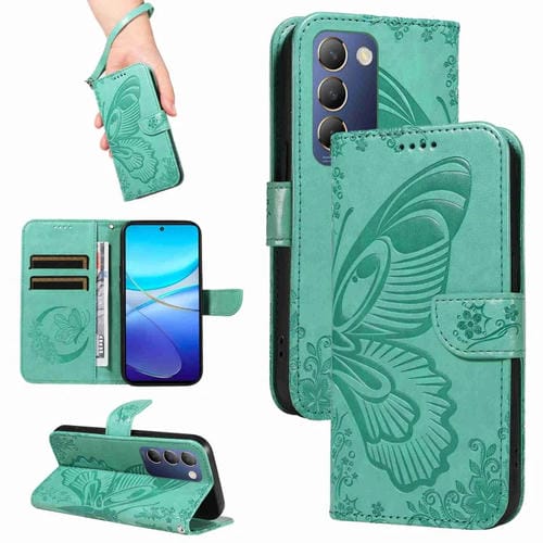 Para Vivo V40 Se 5G / Y100 Idn / Y200E Funda para Teléfono de Cuero con Relieve de Mariposa de Cola de Golondrina (Verde)