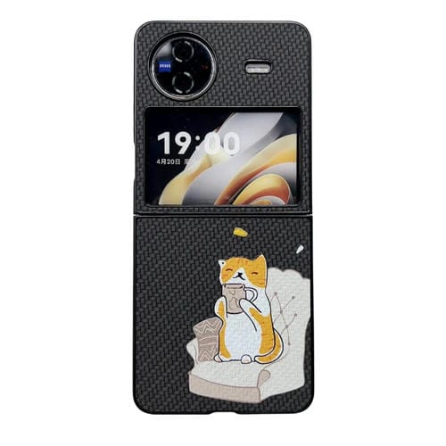 Para Vivo X Flip Funda para Teléfono con Patrón de Dibujo Coloreado con Textura Trenzada (Gato de Café Negro)
