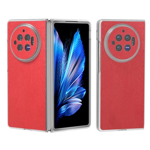 Para Vivo X Fold3 Caja de Teléfono de Pu con Textura de Madera con Bisagra de Marco Transparente Esmerilado (Rojo)