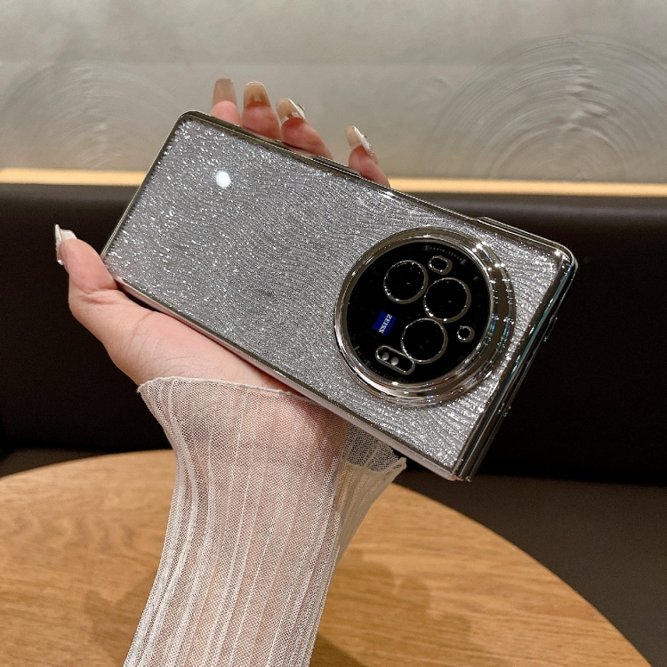 Para Vivo X Fold3 PC Hebilla Lateral + Estuche para Teléfono de Cobertura Total con Papel Brillante Ondulado (Plata)