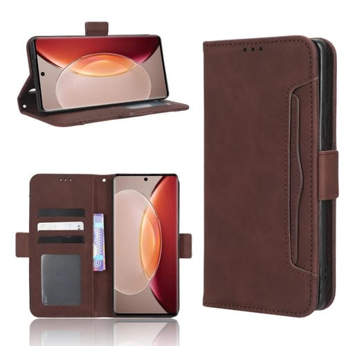 Para Vivo X90 5G Skin Feel Becerro Textura Ranuras para Tarjetas Funda de Cuero para Teléfono (Marrón)