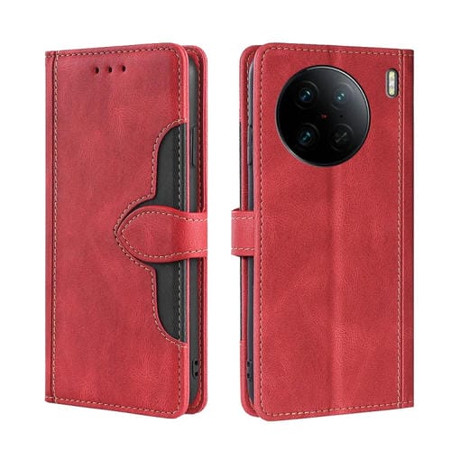 Para Vivo X90 Pro 5G Skin Feel Funda de Cuero con Hebilla Magnética para Teléfono (Rojo)
