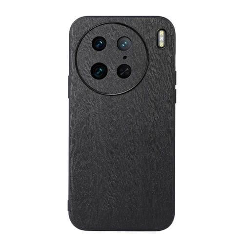 Para Vivo X90 Pro Funda de Teléfono Pu con Textura de Madera (Negro)