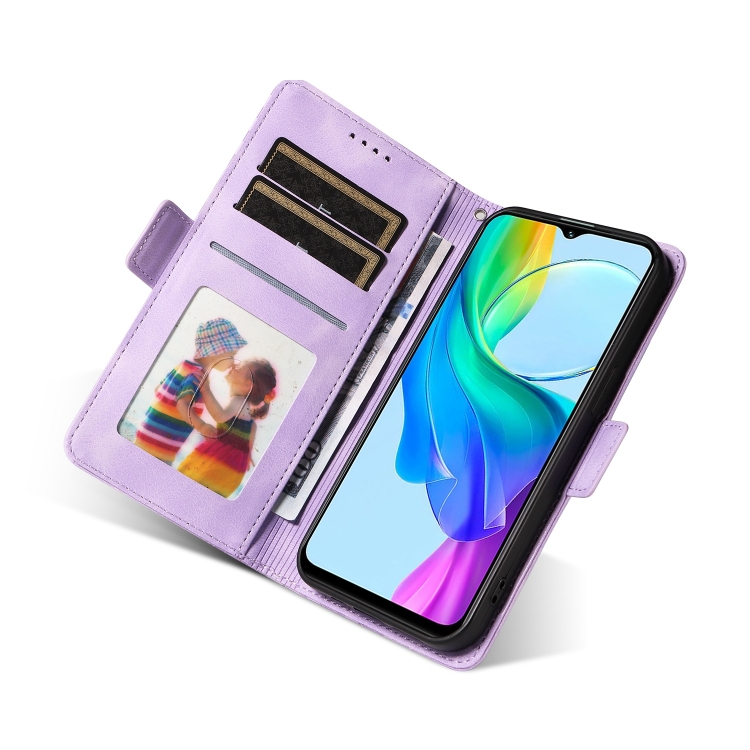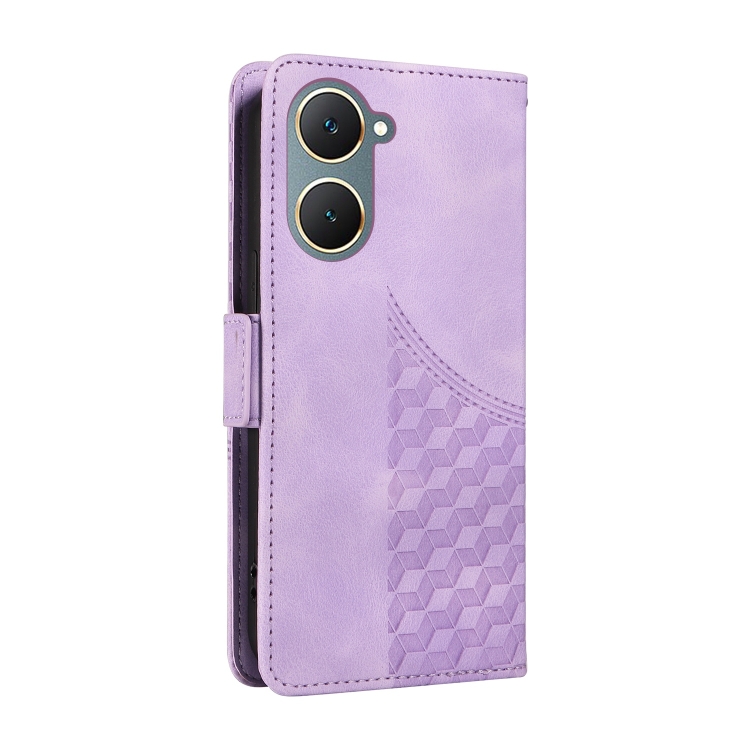 Para Vivo Y03 4G / Y18 / Y18E Funda para Teléfono de Cuero Estrellado con Rombos En Relieve (Púrpura)