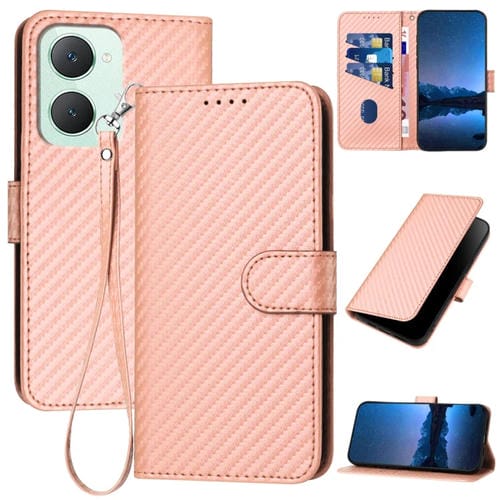 Para Vivo Y03 4G Yx0070 Funda de Cuero con Hebilla de Fibra de Carbono y Cordón (Rosa)