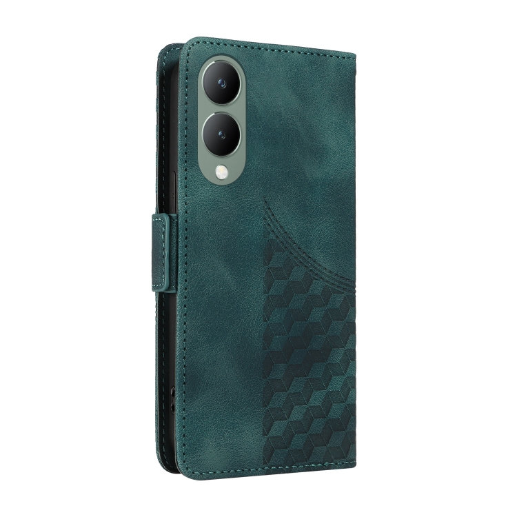 Para Vivo Y17S / Y36I 5G Funda para Teléfono de Cuero Estrellado con Rombo En Relieve (Verde)