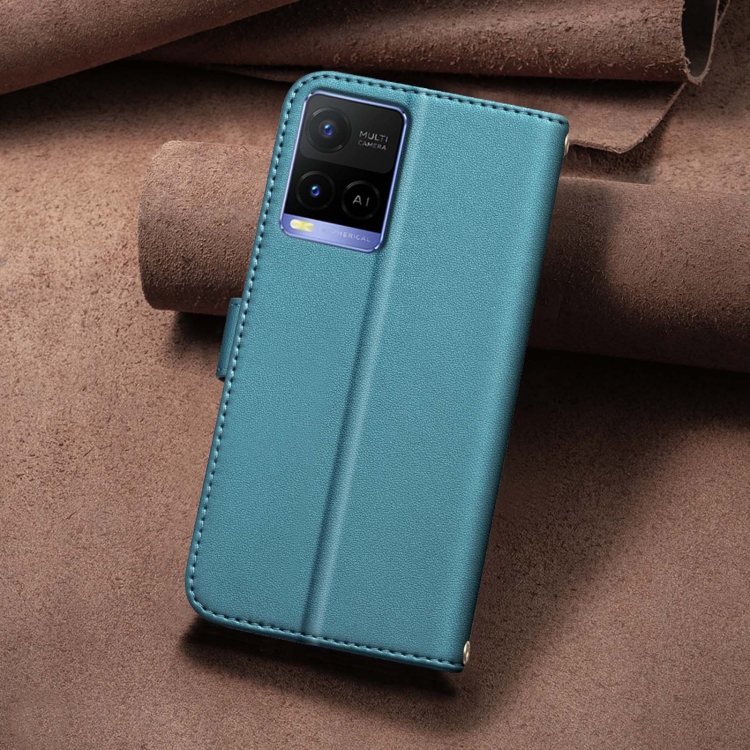 Para Vivo Y21 / Y21S / Y33S Funda para Teléfono de Cuero con Textura Cuadrada (Verde)