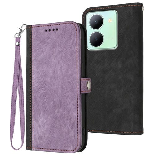 Para Vivo Y27S 4G Global Hebilla Lateral Doble Pliegue Correa de Mano Funda de Cuero para Teléfono (Púrpura)