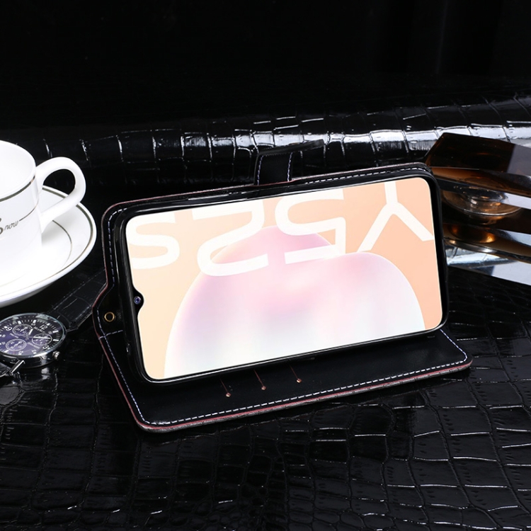 Para Vivo Y31S Idewei Funda de Cuero con Tapa Horizontal con Textura de Cocodrilo con Soporte, Ranuras para Tarjetas y Billetera (Marrón Oscuro)