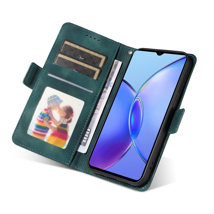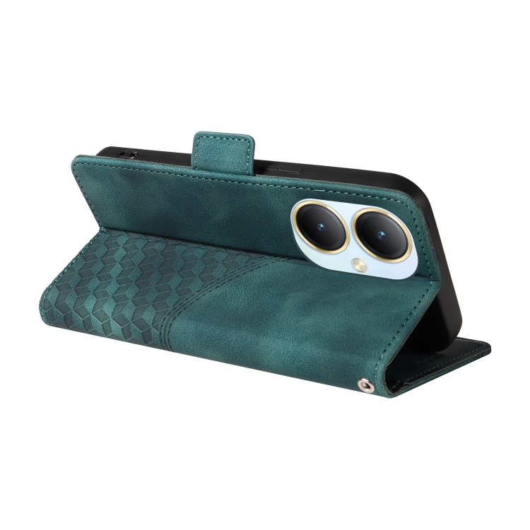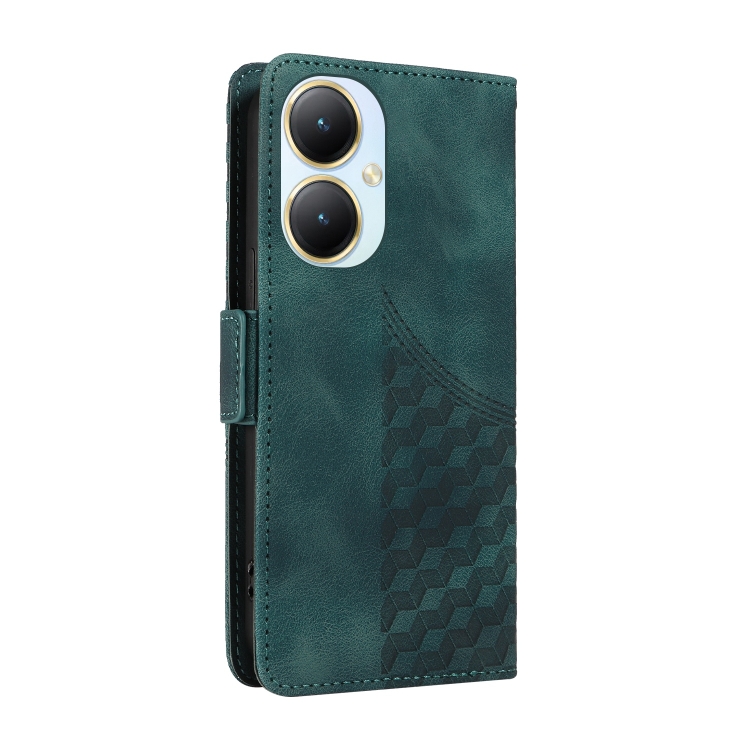 Para Vivo Y35M + / Y35 + / Y27 4G Funda para Teléfono de Cuero Estrellado con Rombos En Relieve (Verde)