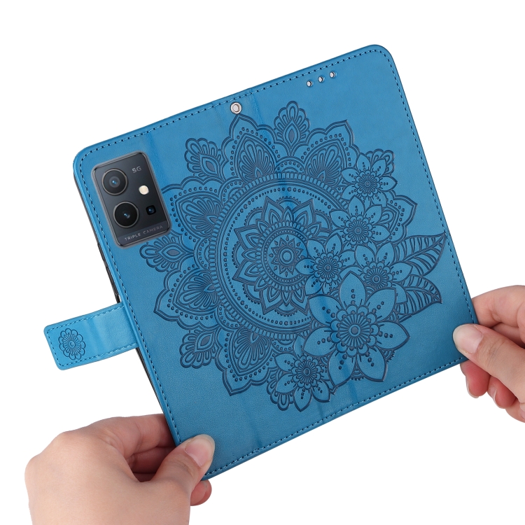 Para Vivo Y55 5G / Y75 5G / T1 5G 7-Petal Flores Patrón de Estampado En Relieve Funda de Cuero de Flip Horizontal (Azul)