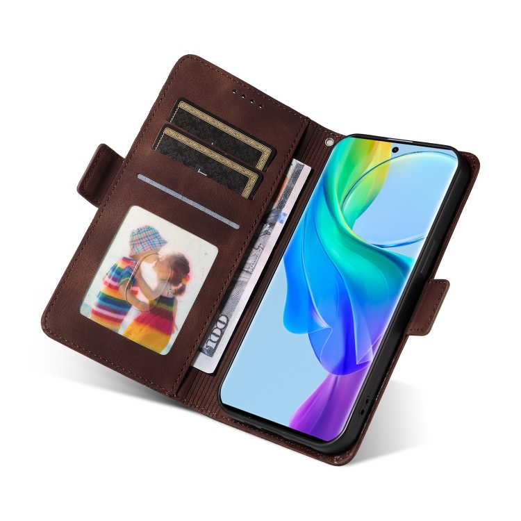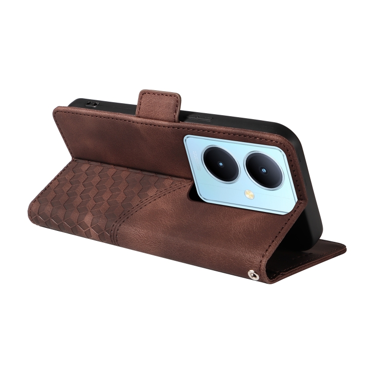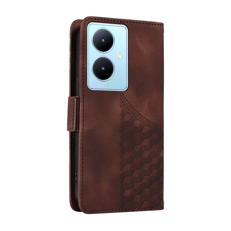 Para Vivo Y78 5G Global / V29 Lite Funda para Teléfono de Cuero Estrellado con Rombos En Relieve (Marrón)