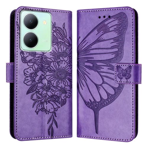 Para Vivo Y78 5G/Y78 + 5G Global/V29 Lite Funda para Teléfono de Cuero con Mariposa En Relieve (Púrpura Claro)