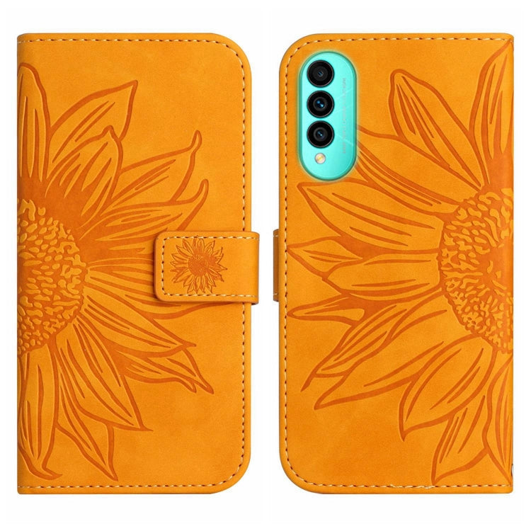 Funda Flip de Cuero para Wiko T50 Skin Feel con Cordón y Diseño Sun Flower (Amarillo)