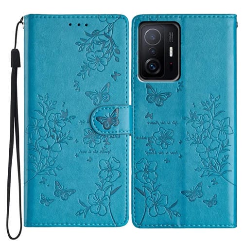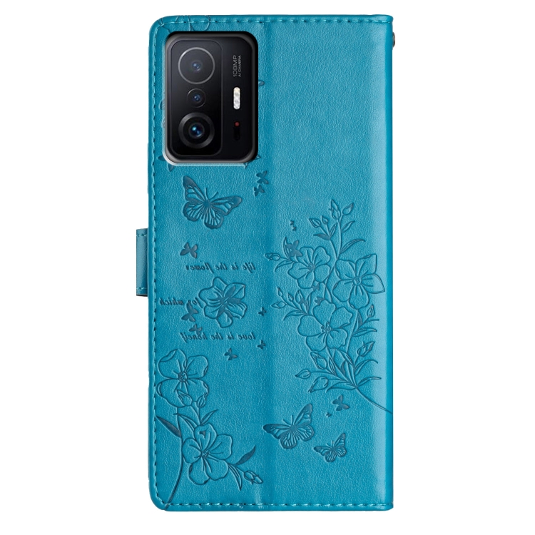 Para Xiaomi 11T / 11T Pro Funda de Cuero para Teléfono con Mariposas y Flores (Azul)