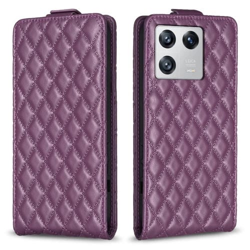 Para Xiaomi 13 Diamond Lattice Funda de Cuero con Tapa Vertical para Teléfono (Púrpura Oscuro)