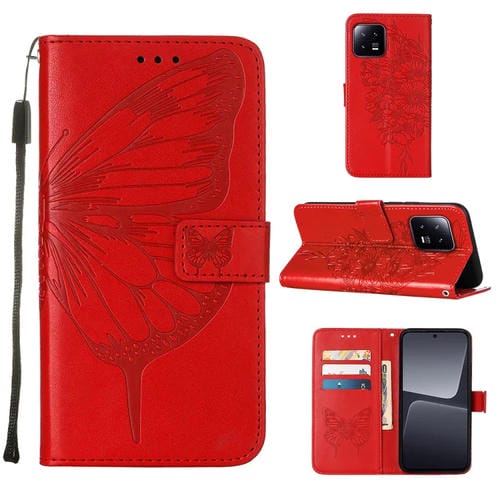 Para Xiaomi 13 Estuche para Teléfono de Cuero con Mariposa En Relieve (Rojo)