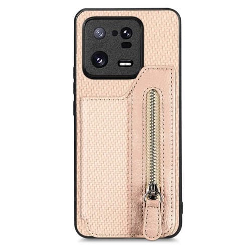 Para Xiaomi 13 Pro Carbon Fiber Flip Zipper Wallet Phone Case (Caqui)