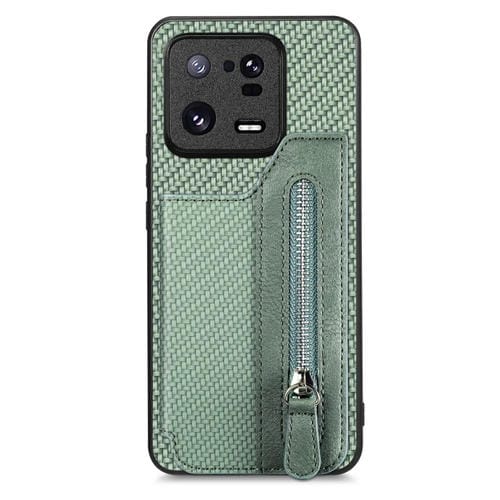 Para Xiaomi 13 Pro Carbon Fiber Flip Zipper Wallet Phone Case (Verde)