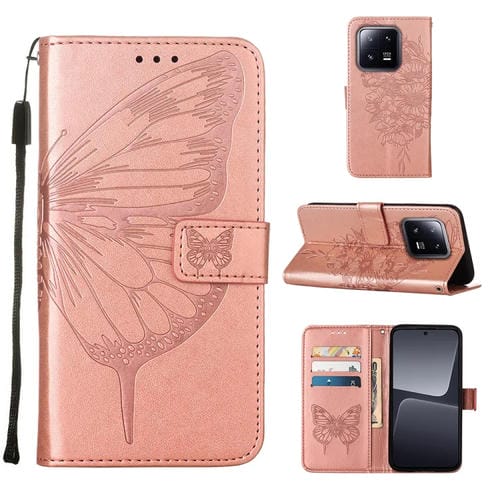 Para Xiaomi 13 Pro Estuche para Teléfono de Cuero con Mariposa En Relieve (Oro Rosa)