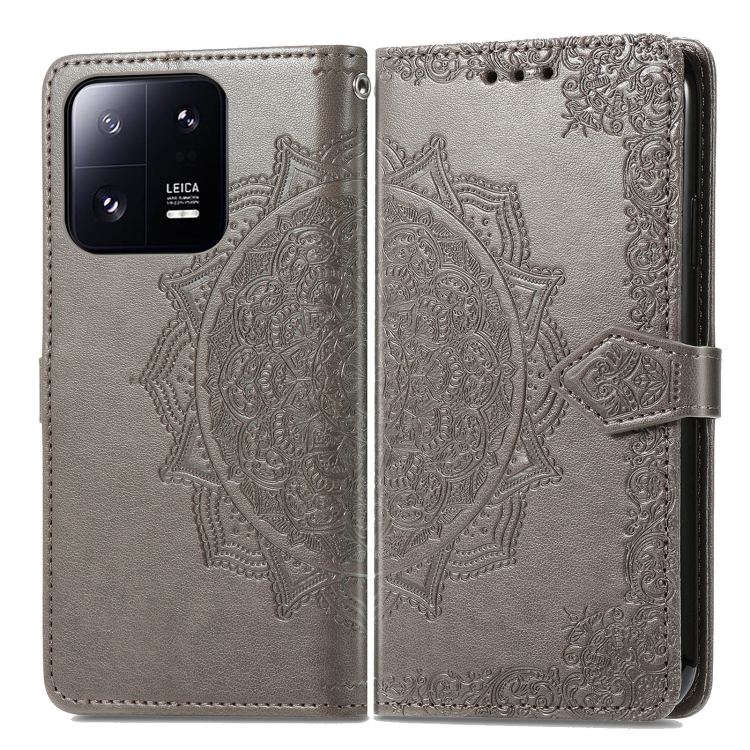 Para Xiaomi 13 Pro Mandala Flower Estuche para Teléfono de Cuero En Relieve (Gris)