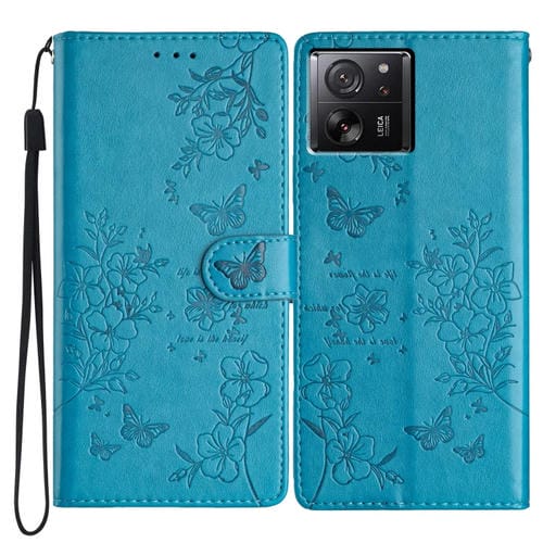 Para Xiaomi 13T / 13T Pro Funda de Cuero para Teléfono con Mariposas y Flores (Azul)