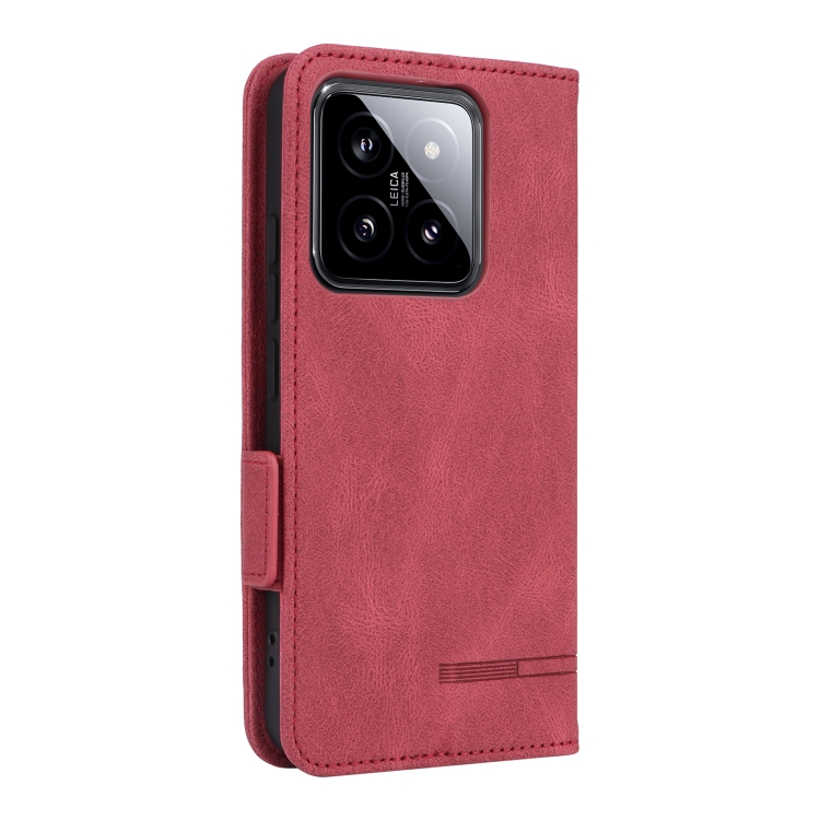 Para Xiaomi 14 Funda De Cuero Con Cierre Magnético (Rojo)