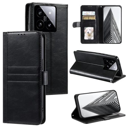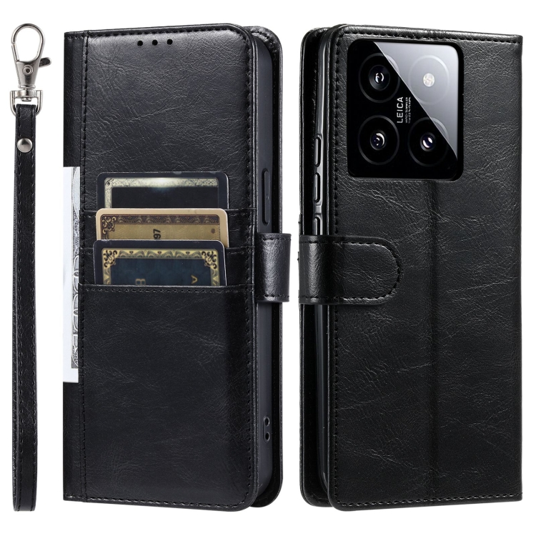 Para Xiaomi 14 Funda De Cuero Para Teléfono Con Billetera Simple Para 6 Tarjetas (Negro)