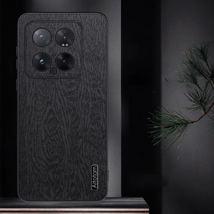 Para Xiaomi 14 Funda De Teléfono A Prueba De Golpes De Cuero Con Corteza De Árbol (Gris)