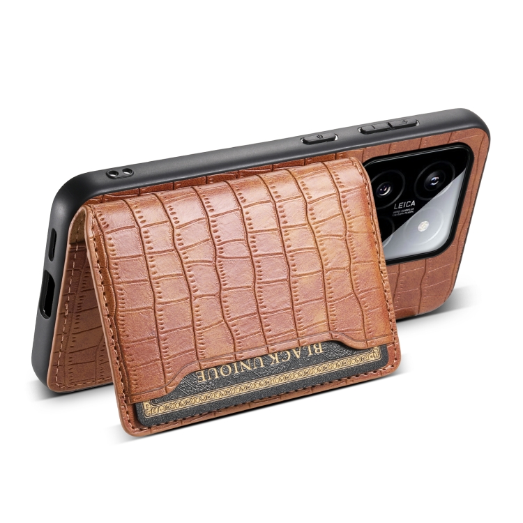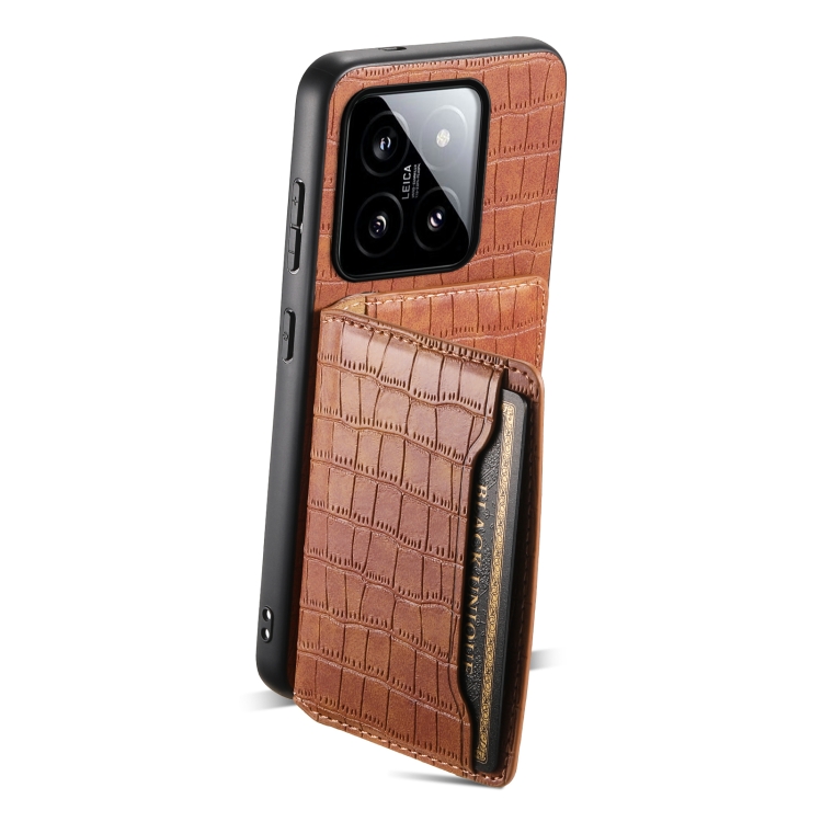 Para Xiaomi 14 Funda Para Teléfono Con Diseño De Bolsa De Tarjeta Con Textura De Cocodrilo (Marrón)