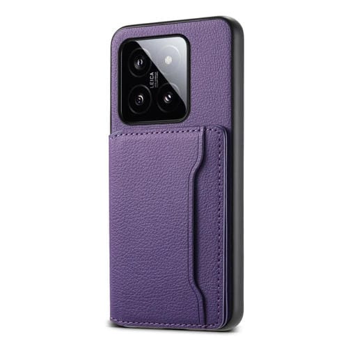 Para Xiaomi 14 Funda Para Teléfono Con Diseño De Bolsa De Tarjeta Con Textura De Pantorrilla (Púrpura)