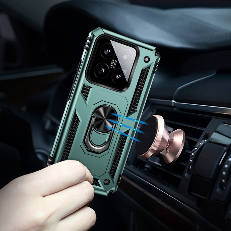 Para Xiaomi 14 Funda Para Teléfono Tpu + Pc A Prueba De Golpes Con Soporte (Verde Oscuro)