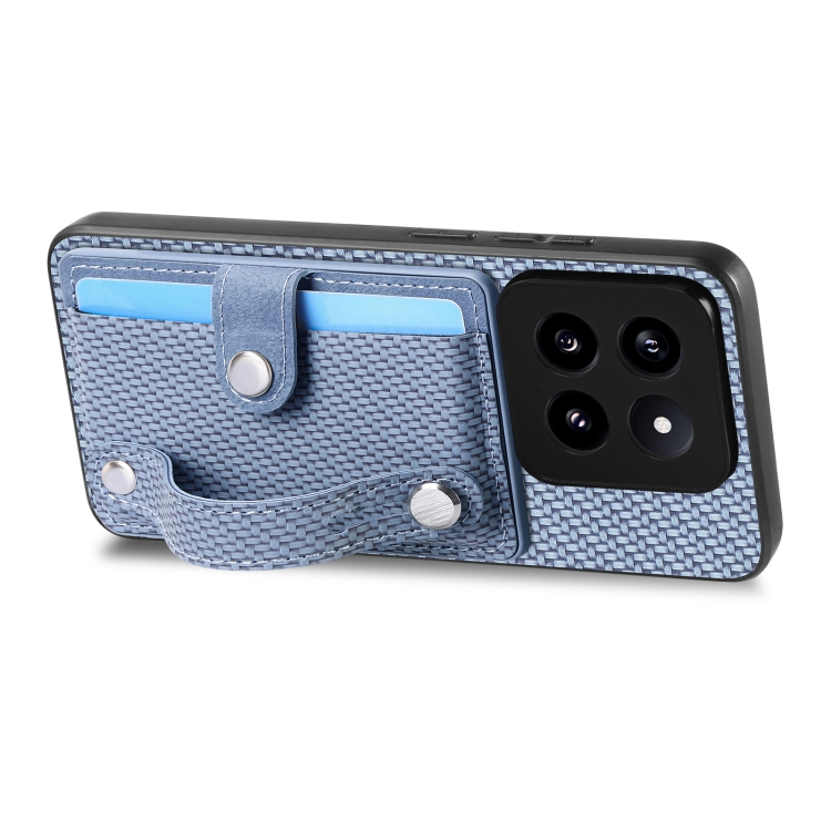 Para Xiaomi 14 Pro Muñequera Kickstand Card Wallet Back Funda Para Teléfono Con Cuchillo Para Herramientas (Azul)