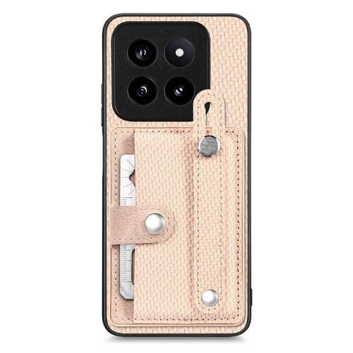 Para Xiaomi 14 Pro Muñequera Kickstand Card Wallet Funda Trasera Para Teléfono Con Cuchillo Para Herramientas (Caqui)