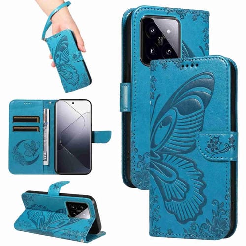 Para Xiaomi 14 Pro Swallowtail Butterfly Funda De Cuero Para Teléfono En Relieve (Azul)