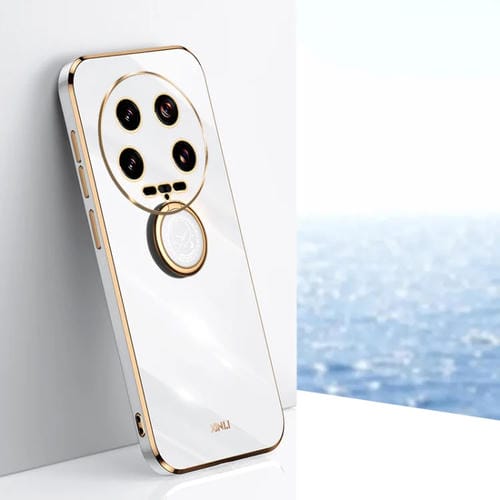 Para Xiaomi 14 Ultra 5G Xinli Straight 6D Plating Gold Edge Tpu Funda A Prueba De Golpes Con Soporte Para Anillo (Blanco)