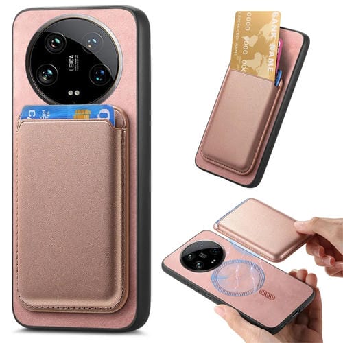 Para Xiaomi 14 Ultra Retro Magsafe Card Bag Pu Funda Para Teléfono Con Contraportada (Rosa)