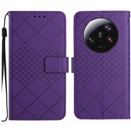 Para Xiaomi 14 Ultra Rhombic Grid Texture Funda De Cuero Para Teléfono (Púrpura)