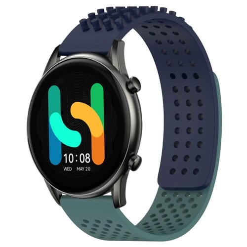 Correa de Silicona para Xiaomi Haylou RT2 LS10 22mm Puntos 3D Transpirable (Azul Medianoche + Verde Oliva)