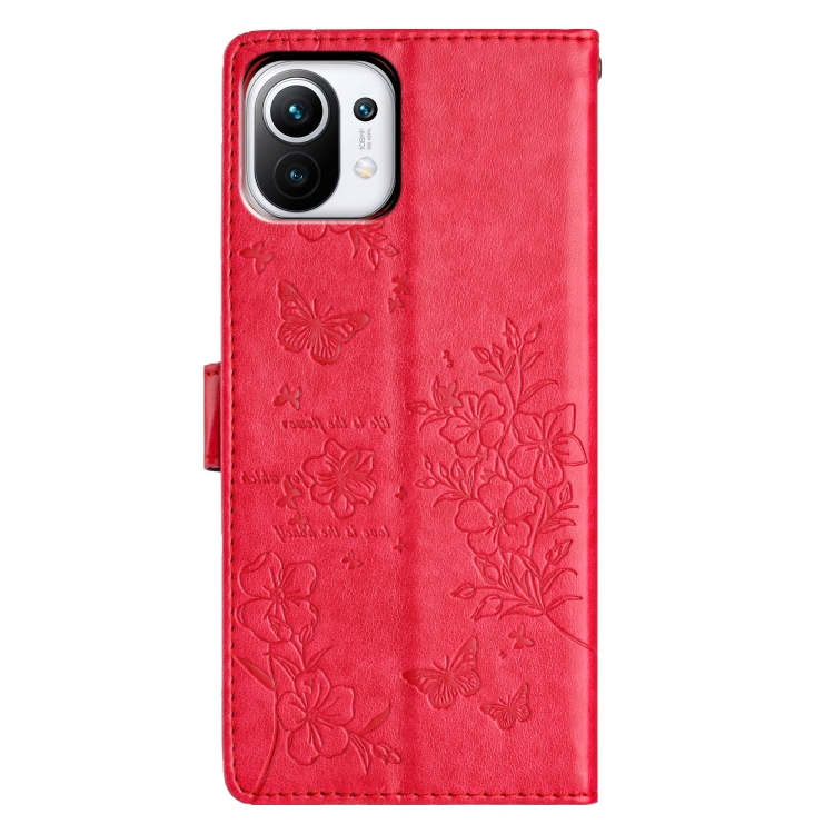 Para Xiaomi Mi 11 Lite Funda de Cuero para Teléfono con Mariposas y Flores (Rojo)