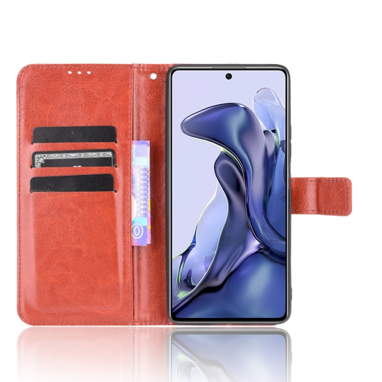 Para Xiaomi MI 11T / 11T Pro Crazy Horse Texture Horizontal Flip Funda de cuero con soporte y ranuras para tarjetas y cordón (marrón)