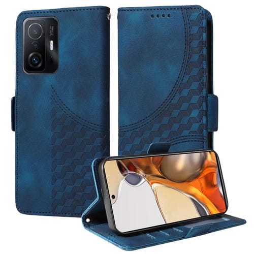 Para Xiaomi Mi 11T / 11T Pro Funda de Teléfono de Cuero Estrellado con Rombos En Relieve (Azul)