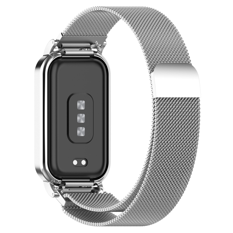 Correa Xiaomi Mi Band 8 Active Milan de Malla de Acero y Metal Magnético con Marco de Reloj (Plata)