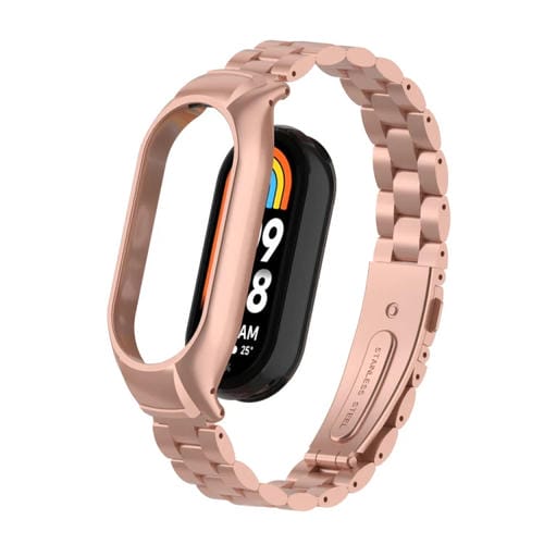 Caja de Metal Integrada para Xiaomi Mi Band 8 con Correa de Tres Cuentas (Rose Red)