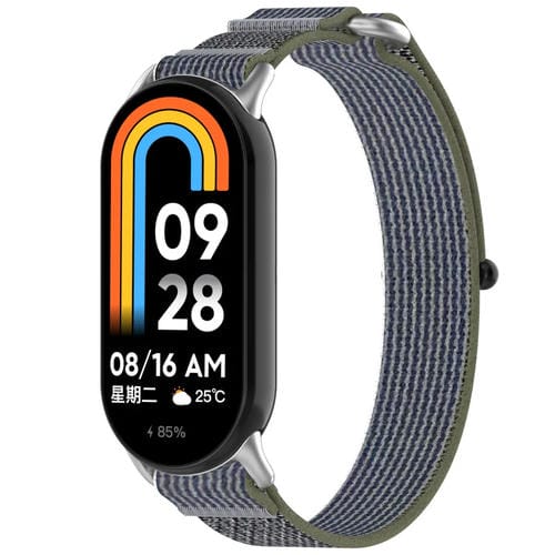 Correa de Reloj para Xiaomi Mi Band 8 con Cierre de Gancho y Bucle de Nailon (Verde Gris)
