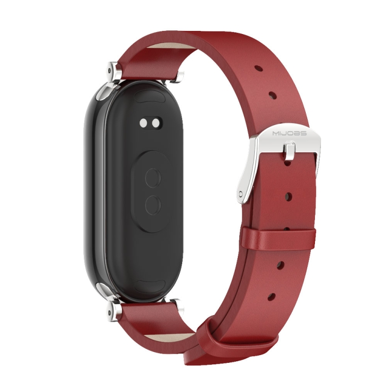 Correa de Reloj para Xiaomi Mi Band 8 Mijobs Gt4 Piel de Vaca (Rojo Plateado)
