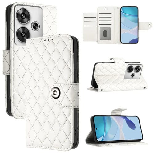 Para Xiaomi Poco F6 5G Funda para Teléfono de Cuero con Tapa con Textura Romboidal y Cordón (Blanco)